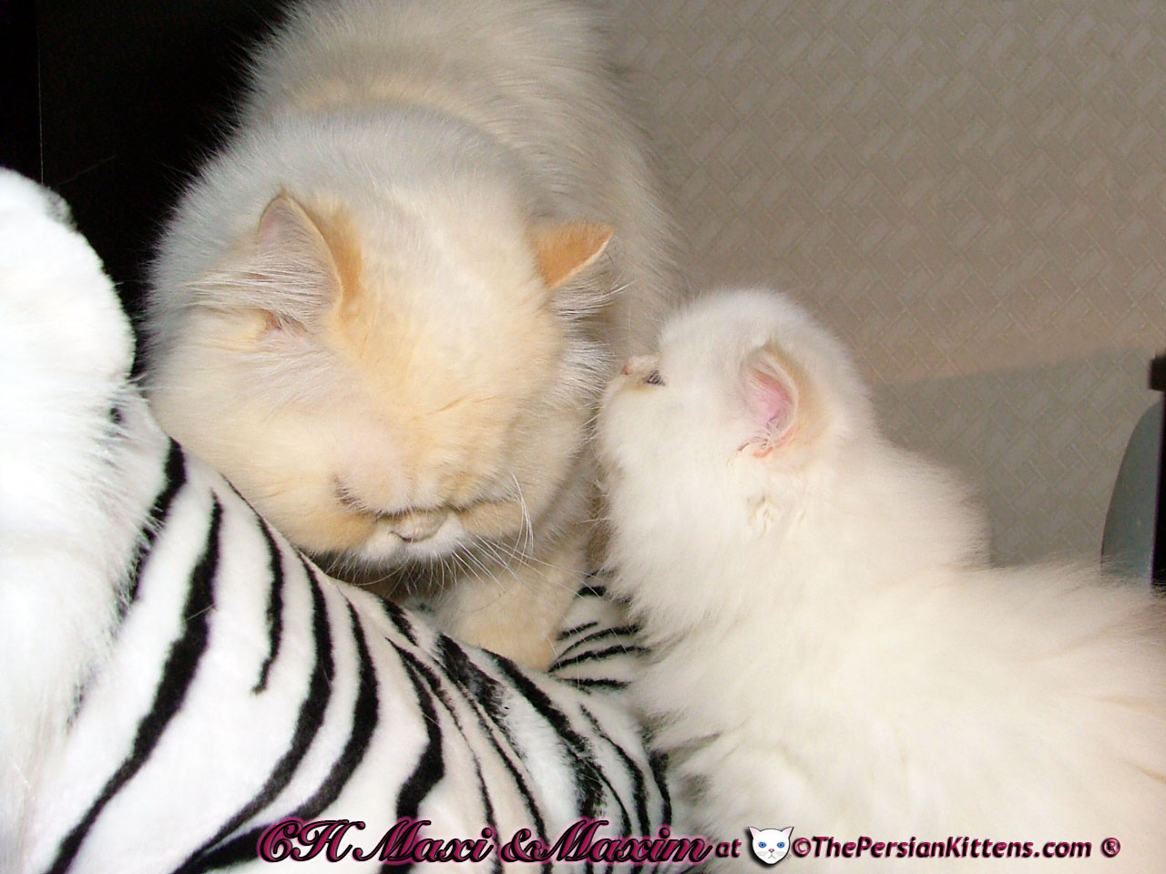 Mommie is massaged while she nurses-which makes "happy milk," and happy kittens! Our himalayan kittens are taught not to scratch or jump on furniture, and are litter AND toilet trained at 6 weeks-(no more scooping cat litter means a cleaner home and less allergies!). Both mother Coco and father Ch Maxi (read more about our Star and CFA Champion) and older siblings help raise the himalayan kittens, and are always kept together as seen in the natural settings in all our himalayan kitten pictures.